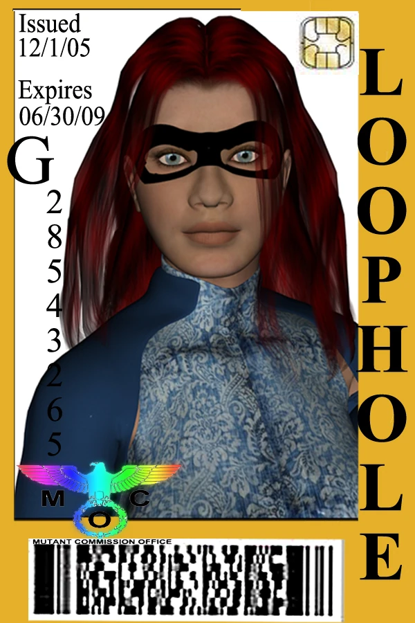 The logo on the back of the card will change based on the Mutant's point of origin. If a country has a dedicated department of its government that deals with mutants they will issue the MID. If not, the MCO will issue the card under the auspice of the UN as a convenience to the Countries in question. In the example at right, Loophole is a US citizen and thus the DPA logo is on her card. Where as Gloriana being a British Subject, her card has the logo of the Home Office on the reverse.